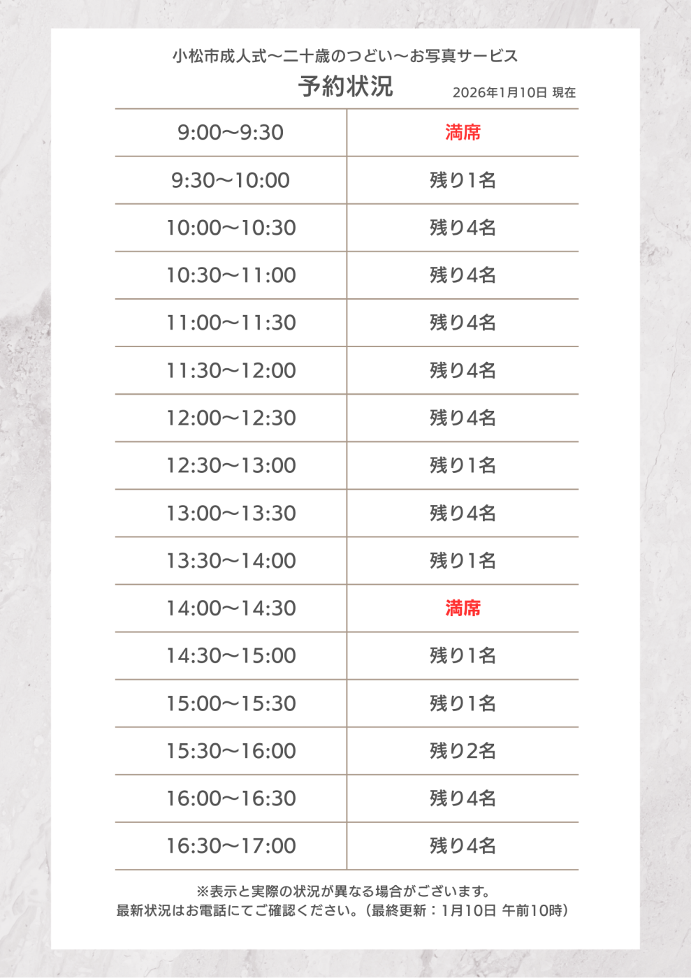 小松市成人式〜二十歳のつどい〜お写真サービスは、館内混雑緩和のため『完全予約制(先着順)』での受付となります。