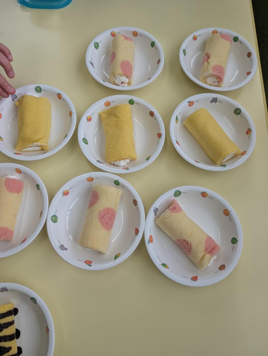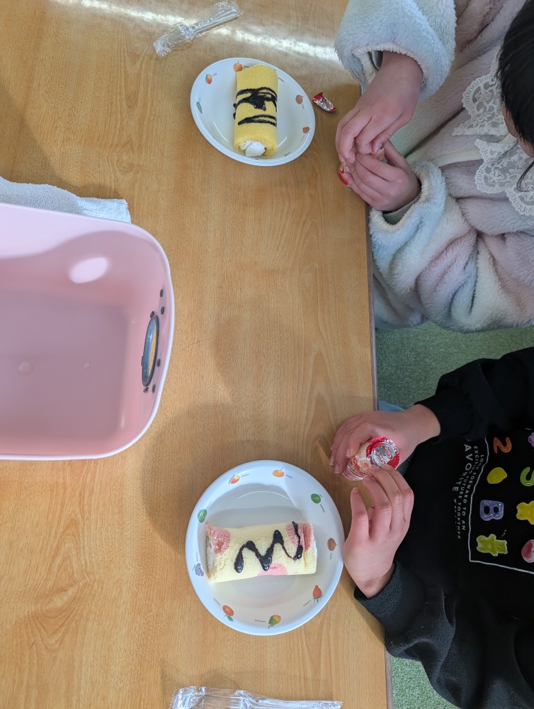 児童クラブの今日のおやつは恵方巻ならぬ「ロールちゃん」