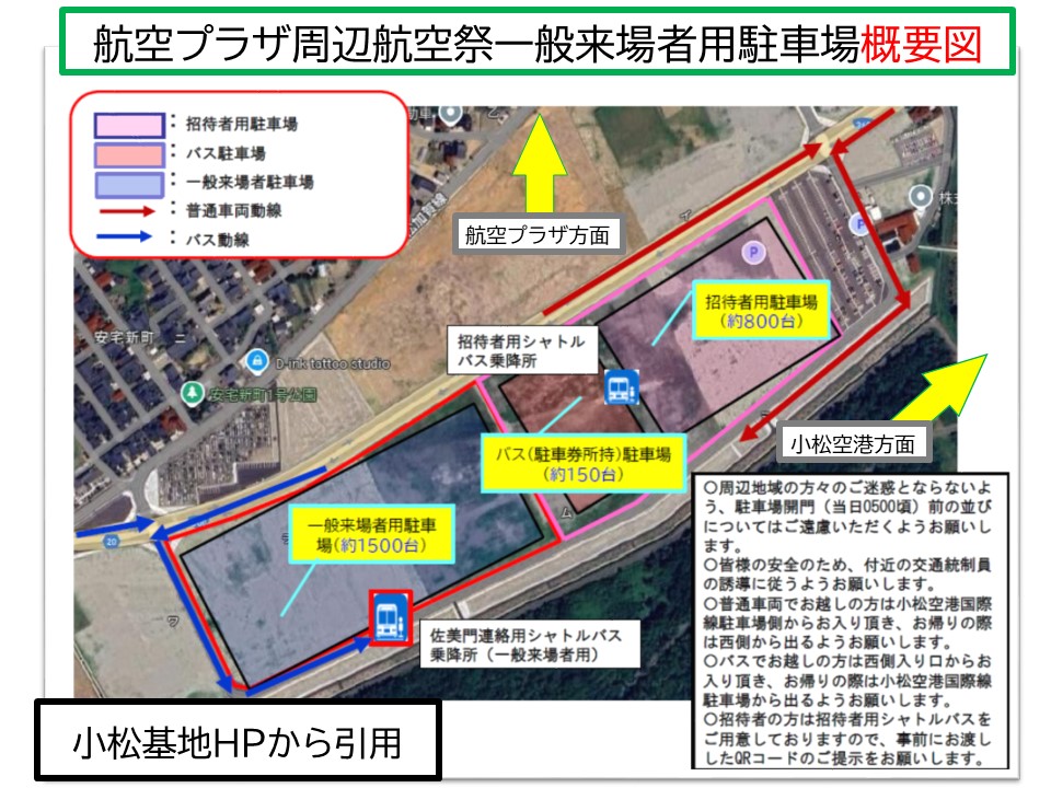 詳しくは、小松基地HP【シャトルバス及び駐車場について】をご確認ください。