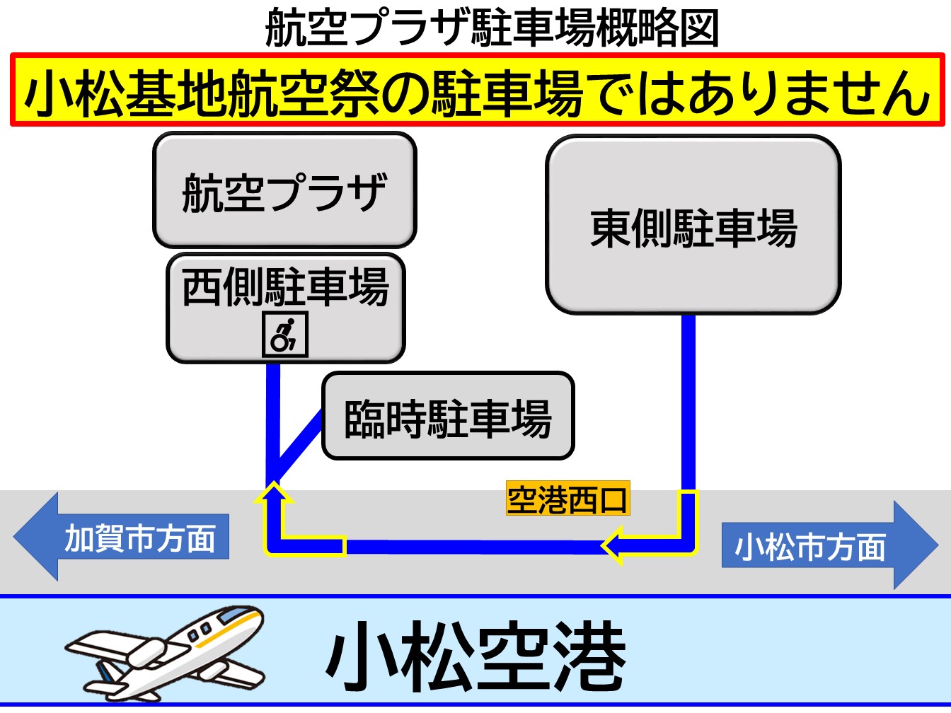 1.当館の駐車場は航空祭の駐車場ではありません。航空祭へお越しの方は、小松基地が指定している「一般来場者用駐車場」をご利用ください。