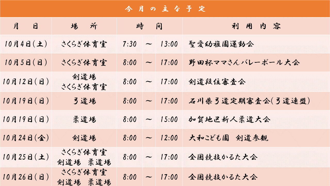 お知らせ HOMEお知らせ一覧小松市武道館10月の行事予定(変更) 2025.10.06スポーツnew【小松市武道館】小松市武道館10月の行事予定(変更) 小松市武道館10月の行事予定(変更) 前へ 一覧 次へ