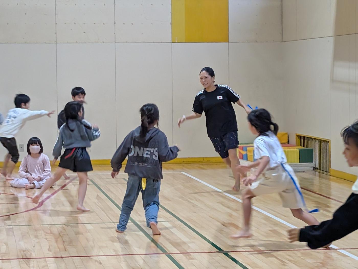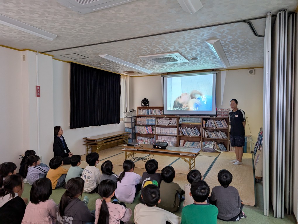 お知らせ HOMEお知らせ一覧オリンピアンがやってきた!! 2025.11.01福祉・学童new【西部児童センター】オリンピアンがやってきた!! オリンピアン(飛び込み)中川真依さんが当センターにやってきました。 みんなで映像で中川さんの現役時代の飛び込みの様子をみて「うわあ」「すごい」「かっこよい」と歓声をあげました。 それから遊戯室に場所を変え中川さんと一緒にストレッチ体操、しっぽとりゲーム・ドッチビーと楽しみました。 こどもたちは中川さんの体の柔軟さに驚き、中川さんは子どもたちの元気の良さに驚いていました。 わずかな時間でしたが一緒に楽しめてよかったです。 また最後には中川さんへの質問コーナー、そして数々の大会で得たメダルの実物を見せていただきこどもたちも大喜びでした。 中川さんありがとうございました。 前へ 一覧 次へ