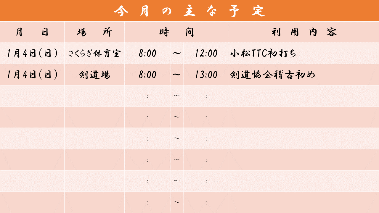 HOMEお知らせ一覧小松市武道館 1月の行事予定